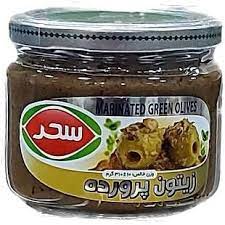 زیتون پرورده شیشه وزن خالص 310 گرم سحر