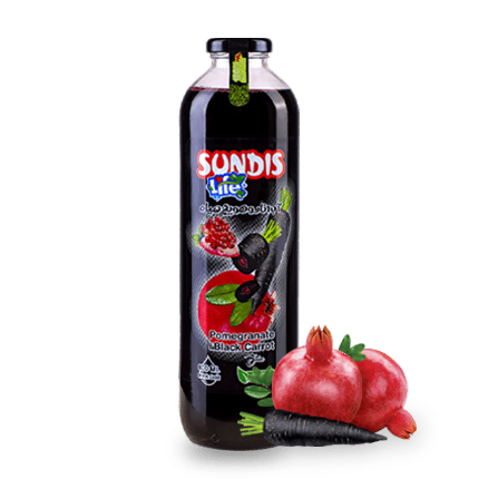 ساندیس شیشه ای آب انار و هویج سیاه انار و هویج سیاه 100 درصد آبمیوه