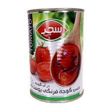 کنسرو گوجه پوست کنده در آب گوجه قوطی وزن خالص 400 گرم سحر